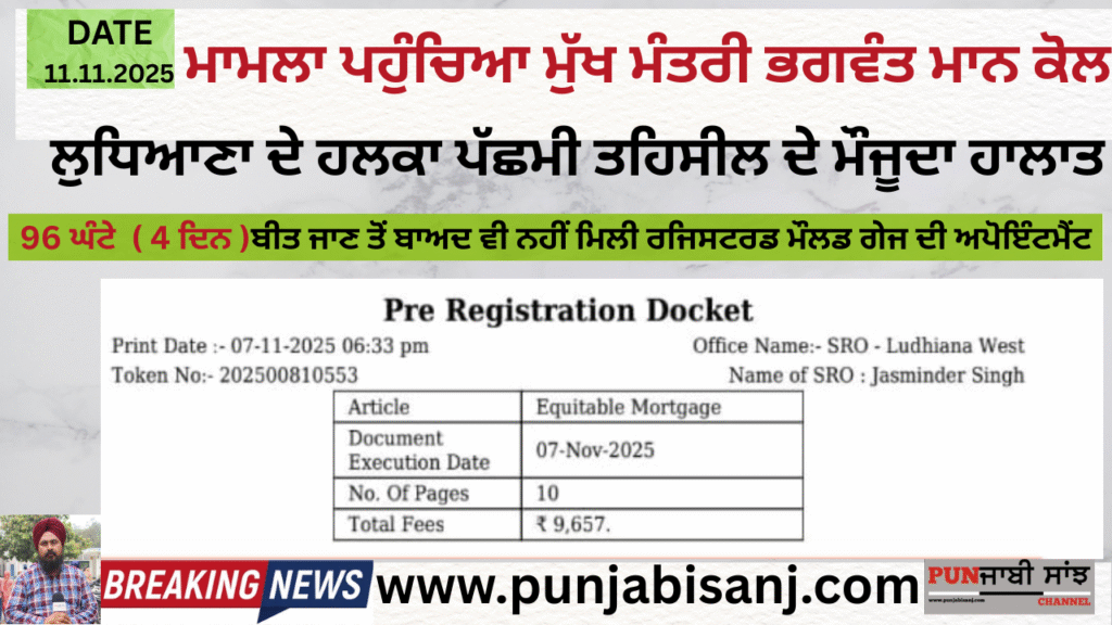 ਲੁਧਿਆਣਾ 11 ਨਵੰਬਰ ( ਹਰਮੇਲ ਸਿੰਘ) ਪੰਜਾਬ ਸਰਕਾਰ ਲੋਕਾਂ ਦੀ ਸਹੂਲਤਾਂ ਵਾਸਤੇ ਵੱਡੇ ਵੱਡੇ ਬਹੁਤੇ ਖਾਂਦੇ ਨਜ਼ਰ ਆ ਰਹੀ ਦੂਜੇ ਪਾਸੇ ਗੱਲ ਕਰੀਏ ਲੁਧਿਆਣਾ ਦੇ ਤਹਿਸੀਲ ਪੱਛਮੀ ਜਿੱਥੇ ਕੀ ਰਜਿਸਟਰਡ ਮੋੜ ਕੇ ਸਬੰਧੀ ਵਿਅਕਤੀ ਨੇ 07.11.2025 ਦੀ ਰਜਿਸਟਰੇਸ਼ਨ ਅਪਲਾਈ ਕੀਤੀ ਹੋਈ ਹੈ । ਨਿਯਮ ਮੁਤਾਬਕ ਇਸ ਤੋਂ ਅਗਲੀ ਅਪੁਆਇੰਟਮੈਂਟ 48 ਘੰਟੇ ਬਾਅਦ ਆਨਲਾਈਨ ਸਿਸਟਮ ਤੇ ਆਉਂਦੀ ਹੈ ਪਰ ਇੱਥੇ ਚਾਰ ਦਿਨ ਅਪੋਇੰਟਮੈਂਟ ਨਹੀਂ ਆਈ ਜਦ ਕਿ ਵਿਅਕਤੀ ਵੱਲੋਂ ਸਬ ਰਜਿਸਟਰਾਰ ਦਫਤਰ ਪੱਛਮੀ ਲੁਧਿਆਣਾ ਦੇ ਵਿੱਚ ਕਈ ਵਾਰ ਚੱਕਰ ਲੁਕਾ ਚੁੱਕੇ ਹਨ । ਹਰ ਵਾਰ ਇੱਕ ਹੀ ਗੱਲ ਕਹੀ ਜਾਂਦੀ ਹੈ ਕਿ ਅੱਜ ਸ਼ਾਮ ਨੂੰ 7 ਵਜੇ ਅਪੋਇੰਟਮੈਂਟ ਮਿਲ ਜਾਵੇਗੀ ਪਰ ਚਾਰ ਦਿਨ ਬੀਤ ਜਾਣ ਤੋਂ ਬਾਅਦ ਵੀ ਅਪੋਇੰਟਮੈਂਟ ਨਹੀਂ ਮਿਲੀ । ਜਦ ਕਿ ਵਿਅਕਤੀ ਵੱਲੋਂ ਮਾਲ ਵਿਭਾਗ ਨੂੰ ਰੈਵਨਿਊ ਵੀ ਦਿੱਤਾ ਜਾਣਾ ਹੈ । ਵਿਅਕਤੀ ਵੱਲੋਂ ਬਾਰ-ਬਾਰ ਤਹਿਸੀਲ ਪੱਛਮੀ ਦੇ ਚੱਕਰ ਲਗਾਏ ਜਾਂਦੇ ਹਨ। ਜਿੱਥੇ ਕਿ ਪੰਜਾਬ ਸਰਕਾਰ ਲੋਕਾਂ ਦੀ ਸਹੂਲਤਾਂ ਵਾਸਤੇ ਮੁੱਖ ਮੰਤਰੀ ਭਗਵੰਤ ਮਾਨ ਵੱਡੇ ਵੱਡੇ ਵਾਅਦੇ ਕਰਦੇ ਨਜ਼ਰ ਆਉਂਦੇ ਹਨ ਪਰ ਜਦੋਂ ਇਸ ਤਰਹਾਂ ਦੇ ਹਾਲਾਤ ਪੈਦਾ ਹੁੰਦੇ ਹਨ ਤਾਂ ਜਿੰਮੇਵਾਰ ਕੌਣ । ਹੁਣ ਦੇਖਣਾ ਇਹ ਹੋਵੇਗਾ ਕਿ ਪੰਜਾਬ ਸਰਕਾਰ ਜਾਂ ਉੱਚ ਅਧਿਕਾਰੀ ਕੀ ਕਰਦੇ ਹਨ । ਇਸ ਦਾ ਇੰਤਜ਼ਾਰ ਰਹੇਗਾ