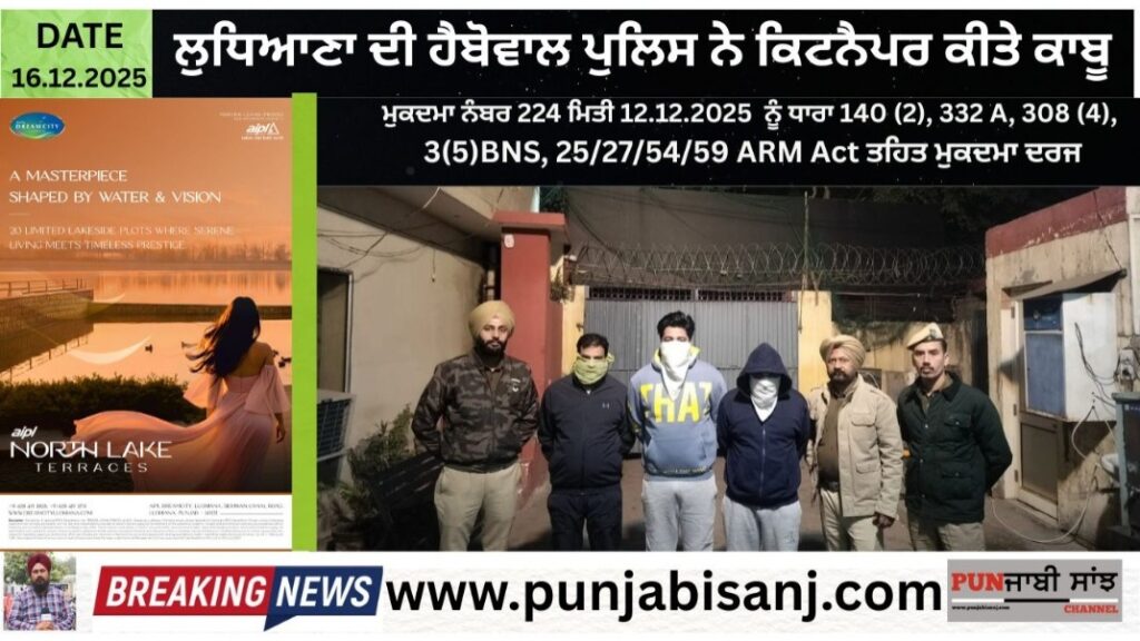 ਸ਼੍ਰੀ ਸਵੱਪਨ ਸ਼ਰਮਾ IPS ਕਮਿਸ਼ਨਰ ਪੁਲਿਸ ਲੁਧਿਆਣਾ ਵੱਲੋ ਪ੍ਰੈਸ ਨੂੰ ਸੰਬੋਧਨ ਕਰਦੇ ਹੋਏ ਦੱਸਿਆ ਗਿਆ ਕਿ ਕੱਲ ਮਿਤੀ 11/12/2025 ਨੂੰ ਦੇਰ ਰਾਤ ਥਾਣਾ ਹੈਬੋਵਾਲ ਦੇ ਏਰੀਆ ਵਿੱਚੋਂ ਇੱਕ ਲੜਕੇ ਨੂੰ ਕਿਡਪੈਨ ਕਰਕੇ ਆਪਣੇ ਨਾਲ ਲਿਜਾਣ ਸੰਬੰਧੀ ਵਾਰਦਾਤ ਹੋਣ ਦੀ ਇਤਲਾਹ ਮਿਲੀ ਜਿਸ ਵਿੱਚਸਤਵਿੰਦਰ ਸਿੰਘ ਪੁੱਤਰ ਰਘਵੀਰ ਸਿੰਘ ਵਾਸੀ ਰਣਜੋਧ ਪਾਰਿਕ ਹੈਬਵਾਲ ਕਲਾਂ ਨੇ ਦੱਸਿਆ ਕਿ ਮੇਰਾ ਲੜਕੇ ਕਮਲਜੀਤ ਸਿੰਘ ਉਮਰ ਕ੍ਰੀਬ 25 ਸਾਲ ਜੋ ਚੰਡੀਗੜ ਵਿਖੇ ਮੋਬਾਇਲਾਂ ਦਾ ਕੰਮ ਕਰਦਾ ਹੈ। ਨੂੰ ਦੇਰ ਰਾਤ ਉਸਨੂੰ ਸਾਡੇ ਘਰ ਤੋਂ ਚਾਰ ਲੜਕੇ ਪਿਸਟਲ ਦੀ ਨੌਕ ਤੇ ਇਨੋਵਾ ਗੱਡੀ ਵਿੱਚ 5 ਲੱਖ ਰੁਪਏ ਦੀ ਫਿਰੌਤੀ ਮੰਗਦੇ ਹੋਏ ਕਿਡਨੈਪ ਕਰਕੇ ਲੈ ਗਏ ਹਨ। ਜਿਸ ਪਰ ਤੁੰਰਤ ਐਕਸ਼ਨ ਲੈਂਦੇ ਹੋਏ ਸ. ਕੰਵਲਪ੍ਰੀਤ ਸਿੰਘ ਚਾਹਲ ਏ.ਡੀ.ਸੀ.ਪੀ ਜੋਨ 03 ਦੀ ਨਿਗਰਾਨੀ ਹੇਠ ਮੁੱਖ ਅਫਸਰ ਥਾਣਾ ਹੈਬੋਵਾਲ ਇੰਸਪੈਕਟਰ ਵਰਿੰਦਰ ਪਾਲ ਸਿੰਘ ਸਿੰਘ ਵੱਲੋਂ ਵੱਖ ਵੱਖ ਟੀਮਾਂ ਬਣਾ ਕੇ ਸੀ.ਸੀ.ਟੀ.ਵੀ ਕੈਮਰੇਆਂ ਨੂੰ ਚੈੱਕ ਕਰਦੇ ਹੋਏ ਅਤੇ ਟੈਕਨੀਕਲ ਮਦਦ ਲੈਂਦੇ ਹੋਏ ਦੋਸ਼ੀਆਂ ਦੀ ਤਲਾਸ਼ ਕਰਨੀ ਸ਼ੁਰੂ ਕੀਤੀ ਗਈ। ਜਿਸਦੀ ਲੜੀ ਵਿੱਚ ਅਮ੍ਰਿਤਸਰ ਦਿਹਾਤੀ ਪੁਲਿਸ ਨਾਲ ਤਾਲਮੇਲ ਕਰਕੇ ਥਾਣਾ ਜੰਡਿਆਲਾ ਗੁਰੂ ਦੇ ਏਰੀਆ ਵਿੱਚੋਂ ਮੁਕੱਦਮਾ ਉਕਤ ਦੇ ਦੋਸ਼ੀਆਂ ਨੂੰ ਸਮੇਤ ਇਨੋਵਾ ਗੱਡੀ,ਪਿਸਟਲ ਅਤੇ ਜਿੰਦਾ ਰੌਂਦ ਦੇ ਕਾਬੂ ਕਰਕੇ ਗ੍ਰਿਫਤਾਰ ਕੀਤਾ ਗਿਆ ਅਤੇ ਕਿਡਨੈਪ ਕੀਤੇ ਲੜਕੇ ਨੂੰ ਬ੍ਰਾਮਦ ਕਰਕੇ ਵਾਰਸਾਂ ਹਵਾਲੇ ਕੀਤਾ ਗਿਆ ਅਤੇ ਜਿਸਤੇ ਮਕੱਦਮਾਮੁਕਦਮਾ ਨੰਬਰ 224 भिडी 12/12/2025 ਅ / ਧ 140(2), 332 ਏ 308(4), 3(5) ਬੀ ਐਨ ਐਸ 25/27/54/59 ਆਰਮਜ਼ ਐਕਟ ਥਾਣਾ ਹੈਬੋਵਾਲ ਕਮਿਸ਼ਨਰੇਟ ਲੁਧਿਆਣਾ ਦਰਜ ਰਜਿਸਟਰ ਹੋਣ ਪਰ ਅੰਗਦੀਪ ਸਿੰਘ ਪੁੱਤਰ ਗੁਰਮੀਤ ਸਿੰਘ ਵਾਸੀ ਮਕਾਨੰ 104 ਅੰਤਰਜਾਮੀ ਕਲੌਨੀ ਸੁਲਤਾਰ ਵਿੰਡ ਰੋਡ ਅਮ੍ਰਿਤਸਰ, ਕਰਮਵੀਰ ਸਿੰਘ ਉਰਫ ਕਰਨ ਪੁੱਤਰ ਅੰਗਰੇਜ਼ ਸਿੰਘ ਵਾਸੀ ਪਿੰਡ ਬੇਜ਼ਮ ਥਾਣਾ ਨਿੰਮ ਗਾਓਂ ਜ਼ਿਲਾ ਲਖੀਮਪੁਰ ਖੀਰੀ ਯੂ.ਪੀ, ਰਾਕੇਸ਼ ਕੁਮਾਰ ਉਰਫ ਕੈਟੀ ਪੁੱਤਰ ਰਾਜ ਕੁਮਾਰ ਵਾਸੀ ਕਟੜਾ ਜੈਮਲ ਸਿੰਘ, ਬਿਜਲੀ ਚੌਂਕ ਅੰਮ੍ਰਿਤਸਰ ਨੂੰ ਗ੍ਰਿਫਤਾਰ ਕਰਕੇ ਸਫਲਤਾ ਹਾਸਲ ਕੀਤੀ। ਦੋਸੀਆਨ ਨੂੰ ਅੱਜ ਮਾਨਯੋਗ ਅਦਾਲਤ ਪੇਸ ਅਦਾਲਤ ਕਰਕ ਦੋਸੀਆਨ ਪਾਸੋ ਹੋਰ ਵੀ ਡੁੰਘਾਈ ਨਾਲ ਪੁੱਛਗਿੱਛ ਕੀਤੀ ਜਾਵੇਗੀ। ਰਹਿੰਦੇ ਦੌਸ਼ੀ ਅਕਸ਼ੇ ਕੁਮਾਰ ਵਾਸੀ ਅੰਮ੍ਰਿਤਸਰ ਨੂੰ ਜਲਦੀ ਗ੍ਰਿਫਤਾਰ ਕਰ ਲਿਆ ਜਾਵੇਗਾ।