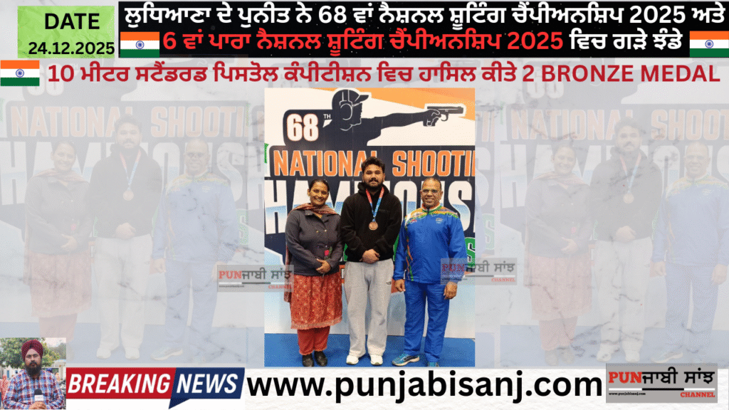 ਲੁਧਿਆਣਾ ਦੇ ਪੁਨੀਤ ਨੇ 68 ਵਾਂ ਨੈਸ਼ਨਲ ਸ਼ੂਟਿੰਗ ਚੈਂਪੀਅਨਸ਼ਿਪ 2025 ਅਤੇ 6 ਵਾਂ ਪਾਰਾ ਨੈਸ਼ਨਲ ਸ਼ੂਟਿੰਗ ਚੈਂਪੀਅਨਸ਼ਿਪ 2025 ਵਿਚ ਗੜੇ ਝੰਡੇ